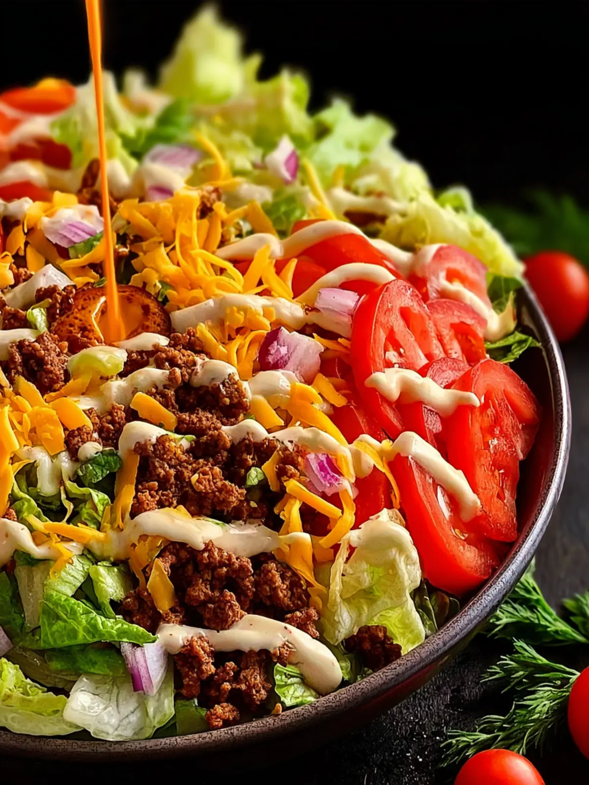 Tomatoes: Juicy diced tomatoes complete the Big Mac Salad, offering a burst of freshness that elevates the overall taste. They bring a nice contrast to the savory elements while adding a pop of color on the plate.