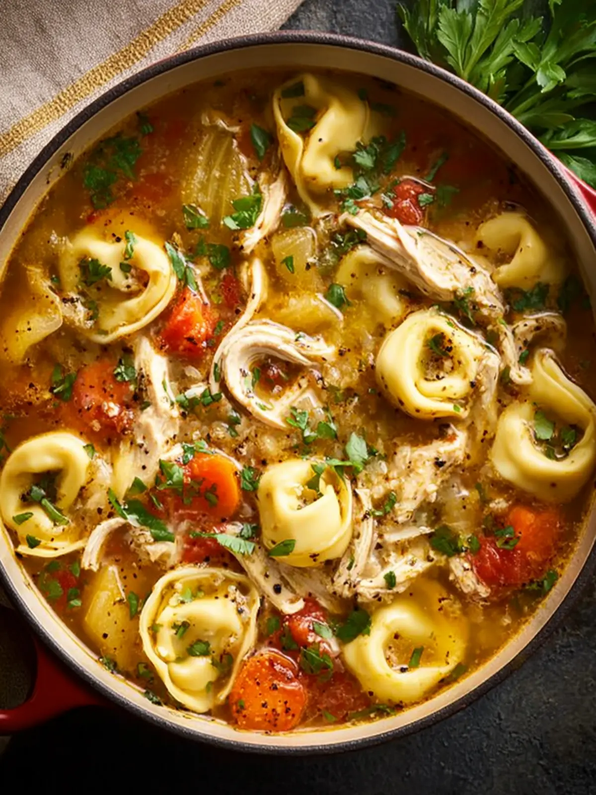 • Garnish Wisely: Fresh herbs like basil or parsley can elevate your chicken tortellini soup, adding a pop of color and freshness. A sprinkle of Parmesan cheese also brings a delicious salty richness to every bowl.