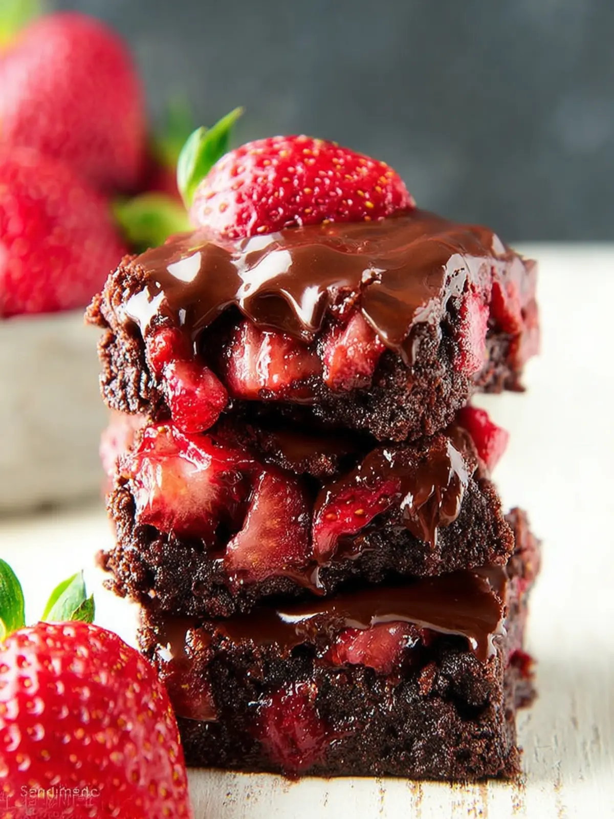 Imagine hosting a gathering with friends, and you unveil these luscious brownies. The vibrant red strawberries peeking through the glossy chocolate glaze will captivate their attention before they even taste them. As they take that first bite, the harmony of flavors is certain to leave everyone smiling and asking for the recipe.