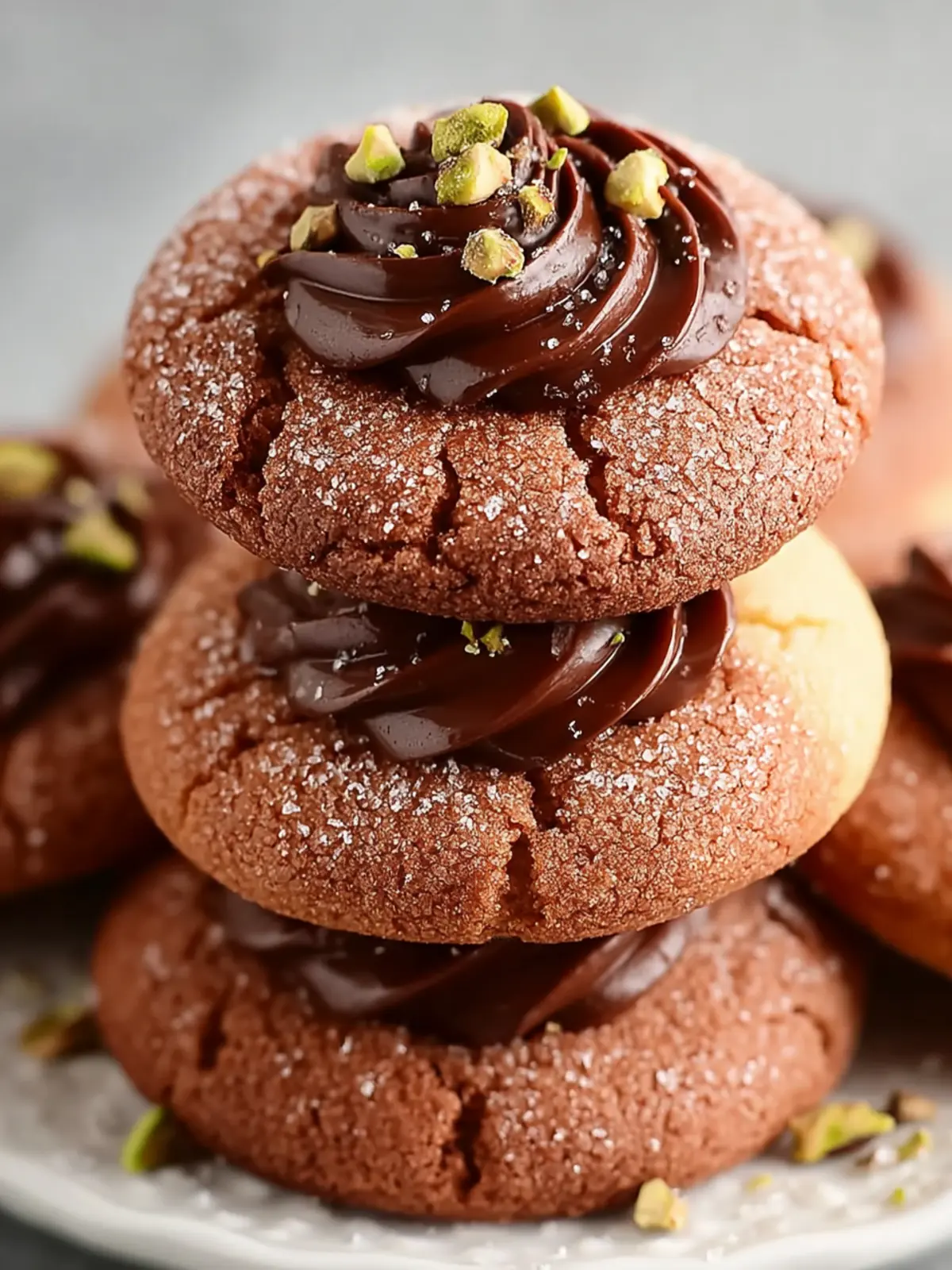 Delicious chocolate cookies with a hint of coffee and a crunchy pistachio topping.