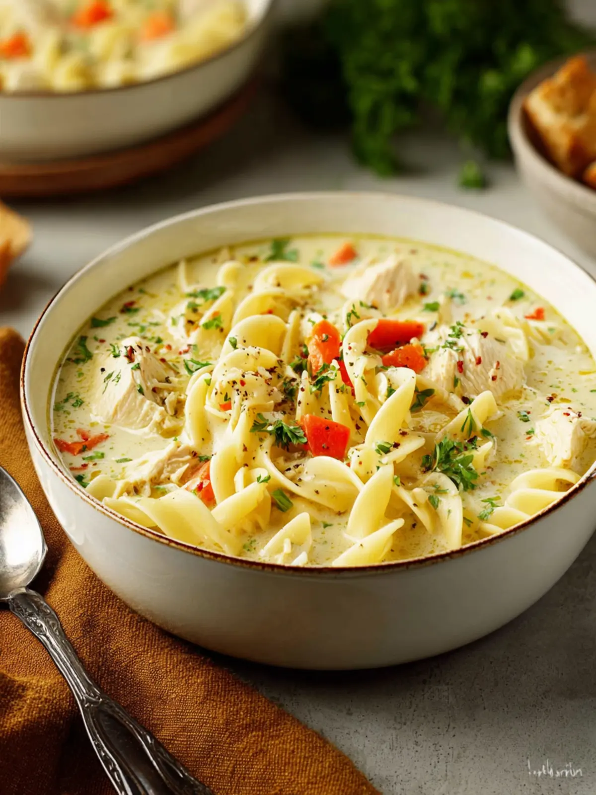 In a world of fast-paced living, allow yourself the time to enjoy this rich creamy chicken noodle soup that’s bound to become a cherished staple in your kitchen.