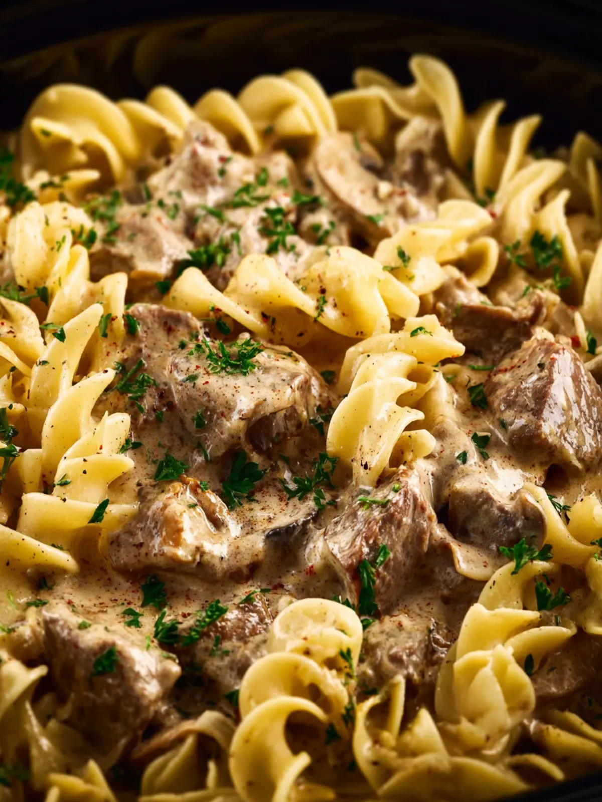 This Slow Cooker Beef Stroganoff is a rich and creamy dish made with tender beef, mushrooms, and a flavorful sauce, served over wide egg noodles. Perfect for a comforting meal!