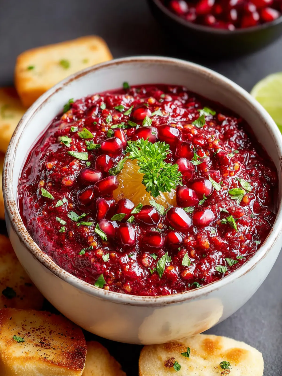 Citrus Burst: Why not add a splash of fresh lime or orange juice? This citrus element enhances the cranberry pomegranate salsa, bringing it a tangy brightness that cuts through the sweetness. Pairing the dip with some zest from lime or orange peel can intensify the flavor profile, too.