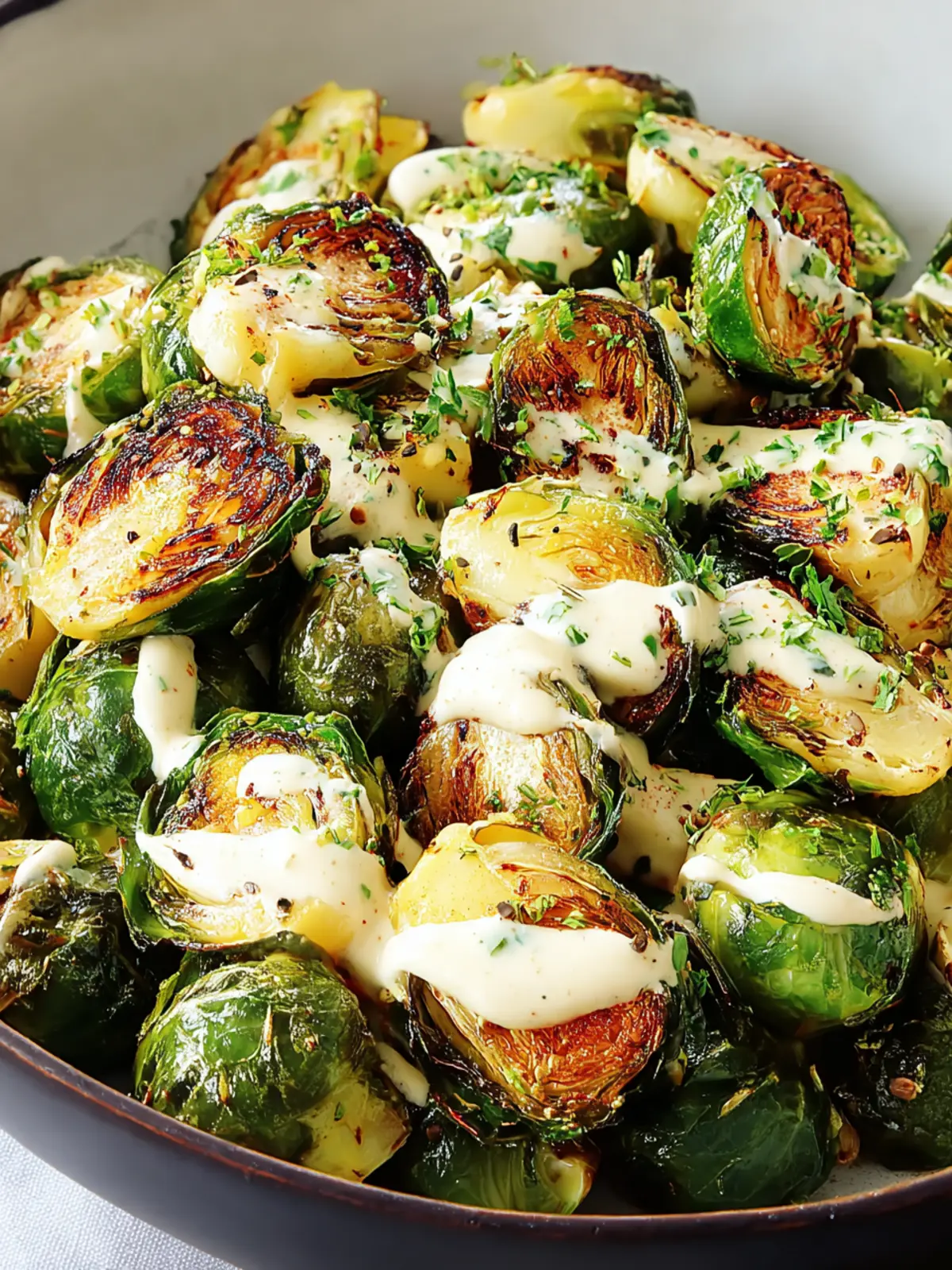 - Health Benefits: Brussels sprouts are packed with vitamins K and C, while the tahini adds healthy fats and protein.