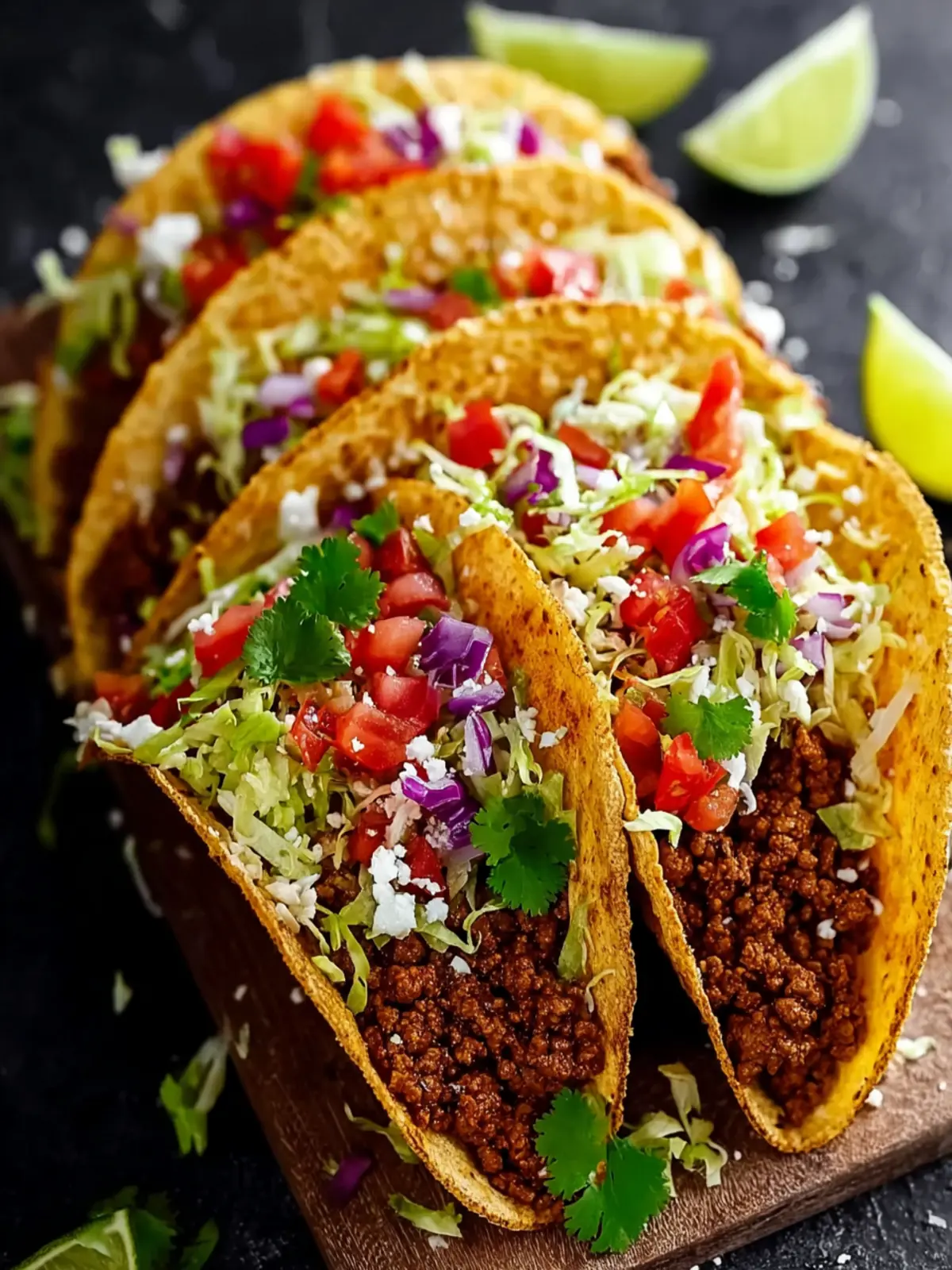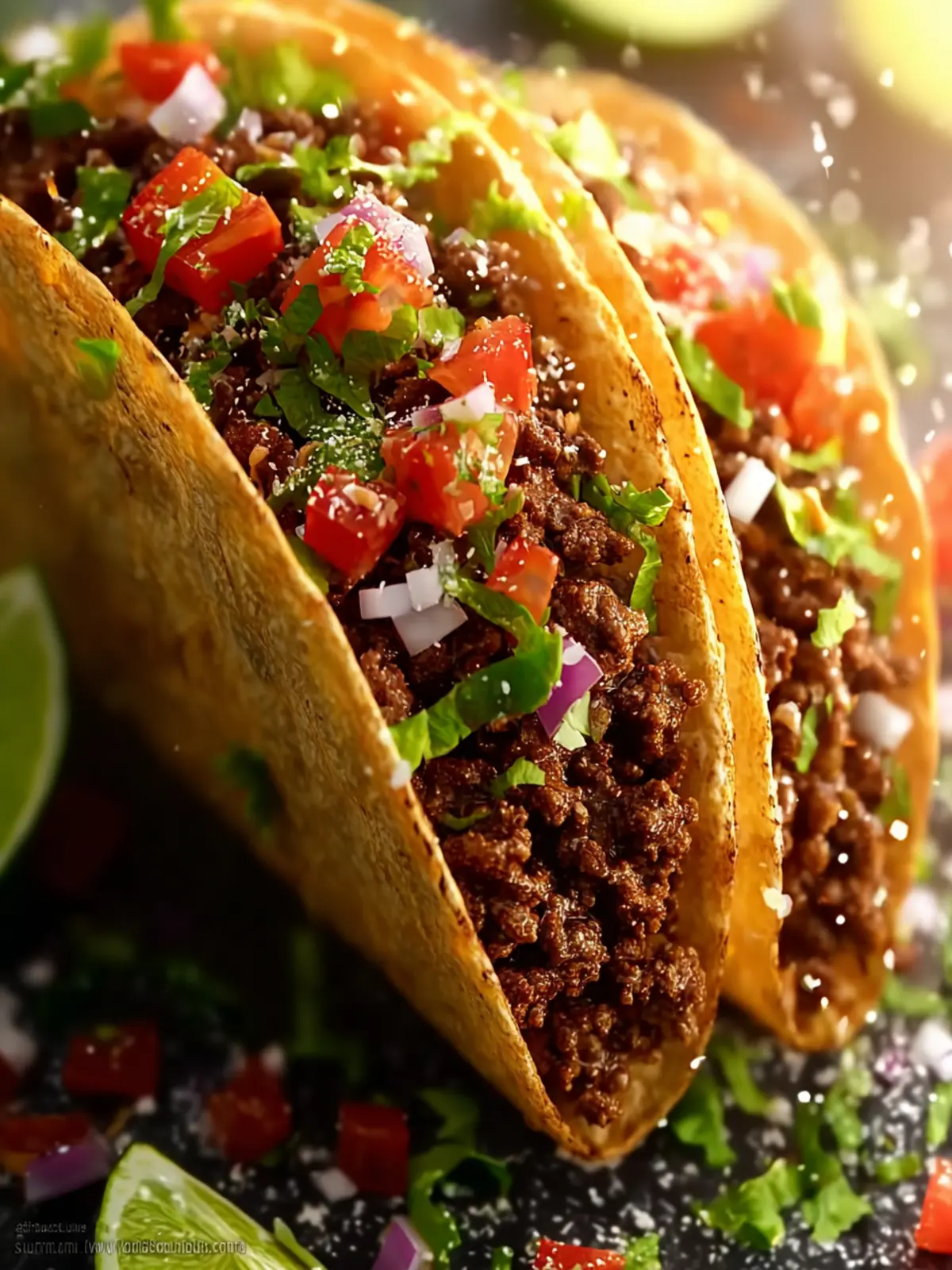 Delicious homemade tacos filled with seasoned ground beef and fresh toppings.
