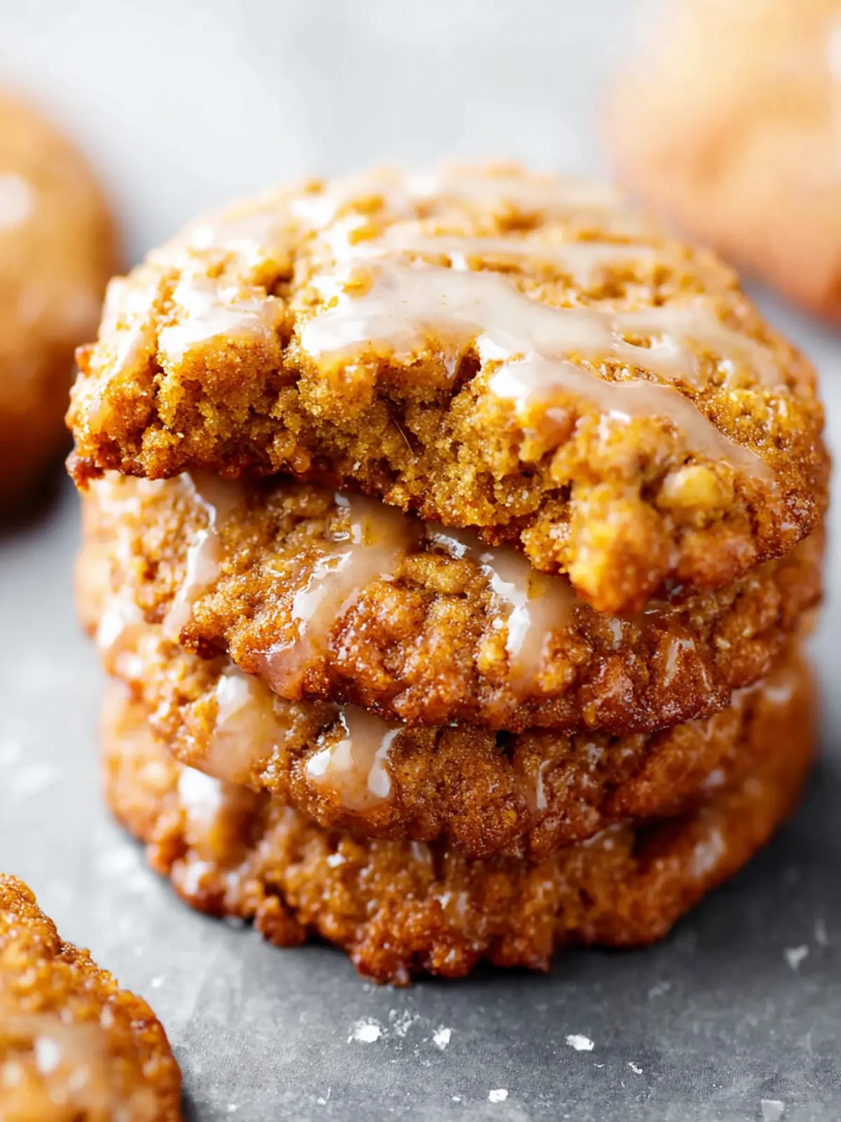 Delicious gluten-free pumpkin cookies topped with a sweet glaze.