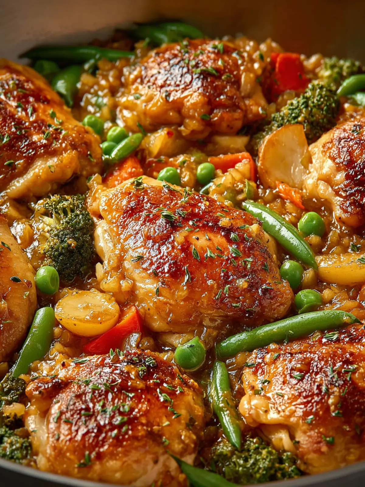 This honey-garlic chicken casserole is quite flexible when it comes to veggies. Some great options include: