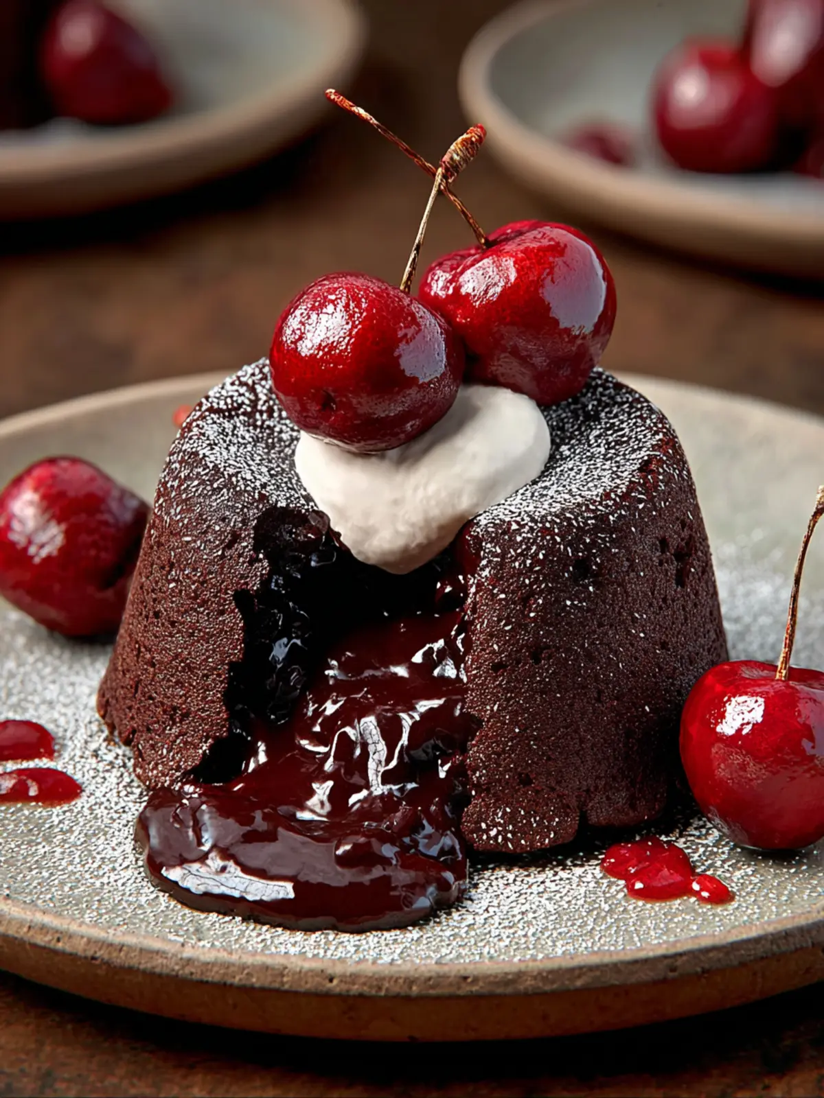 Fresh Cherries: Garnish each lava cake with fresh cherries for a burst of tartness that complements the chocolate beautifully.