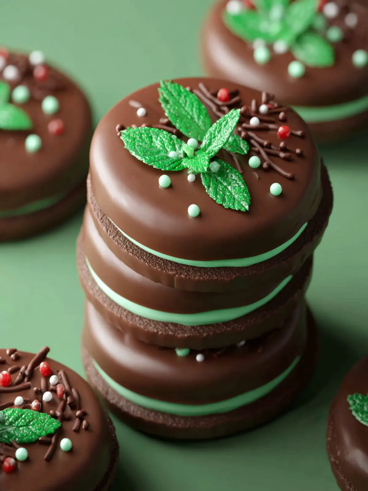 Once your mint chocolate dipped Oreos are set, elevate them by adding toppings: