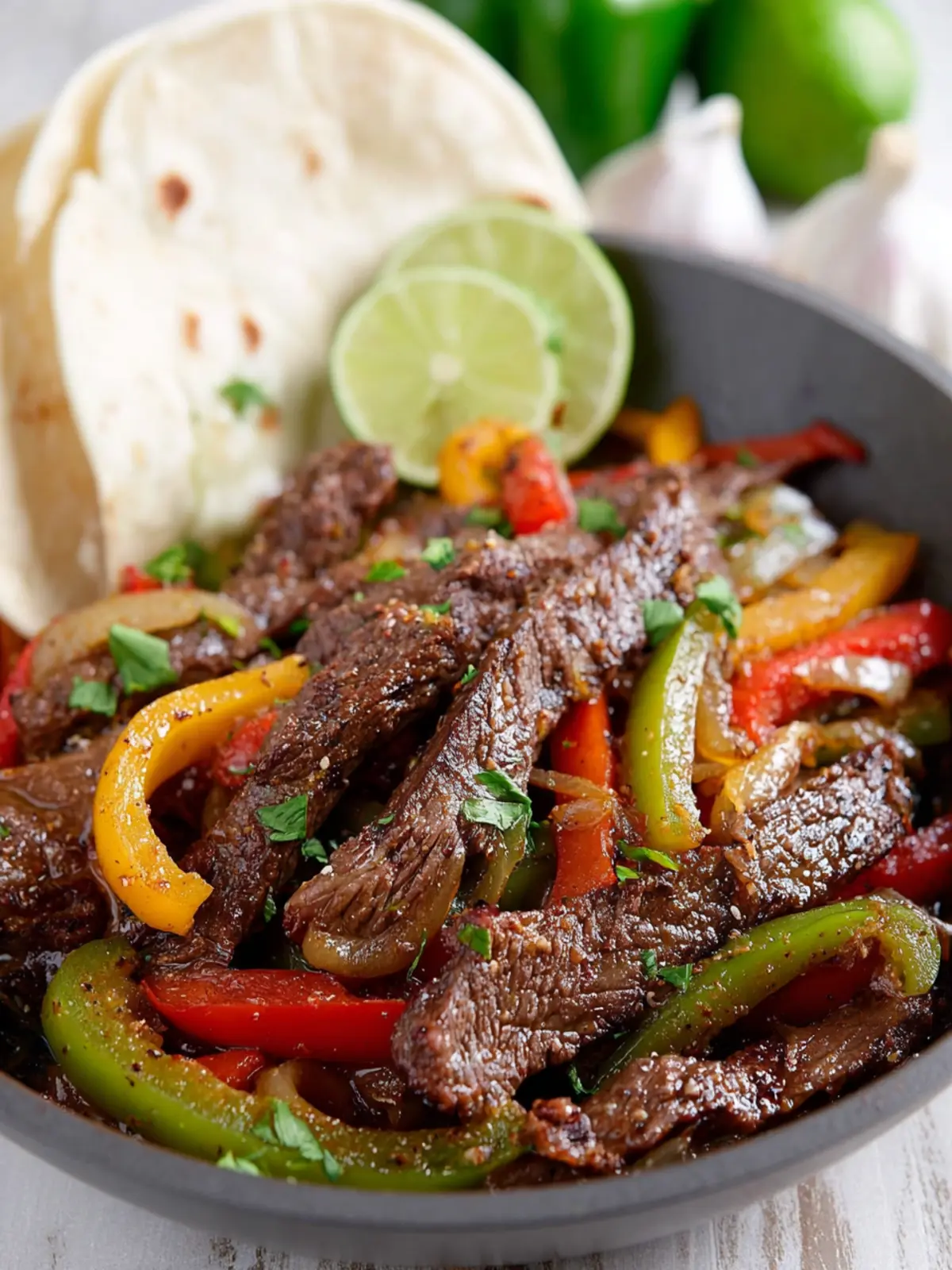 Delicious beef fajitas with colorful bell peppers, perfect for a quick dinner.