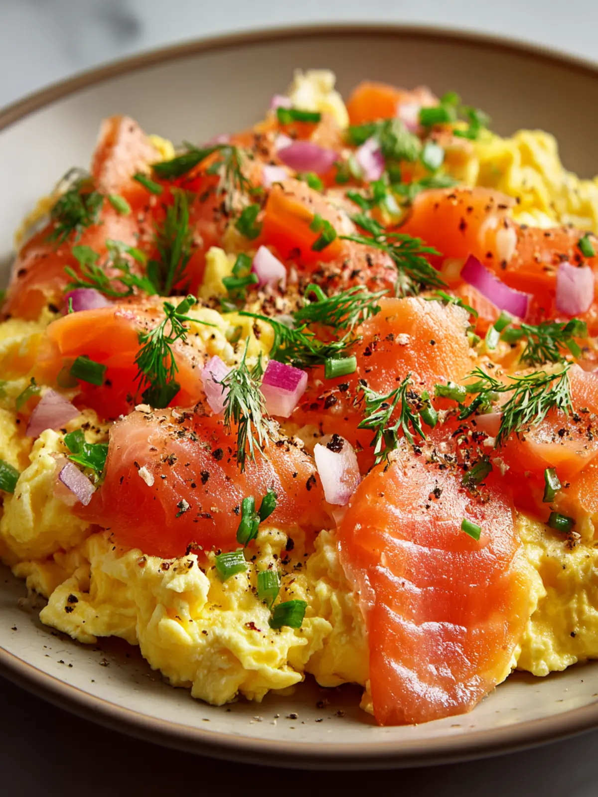 Nutrient-Rich Delight: Smoked salmon is packed with omega-3 fatty acids, proteins, and vitamins, making this scramble not only delicious but also a wholesome start to your day. Pair it with eggs, and you’ve got a hearty dish to fuel your busy morning.