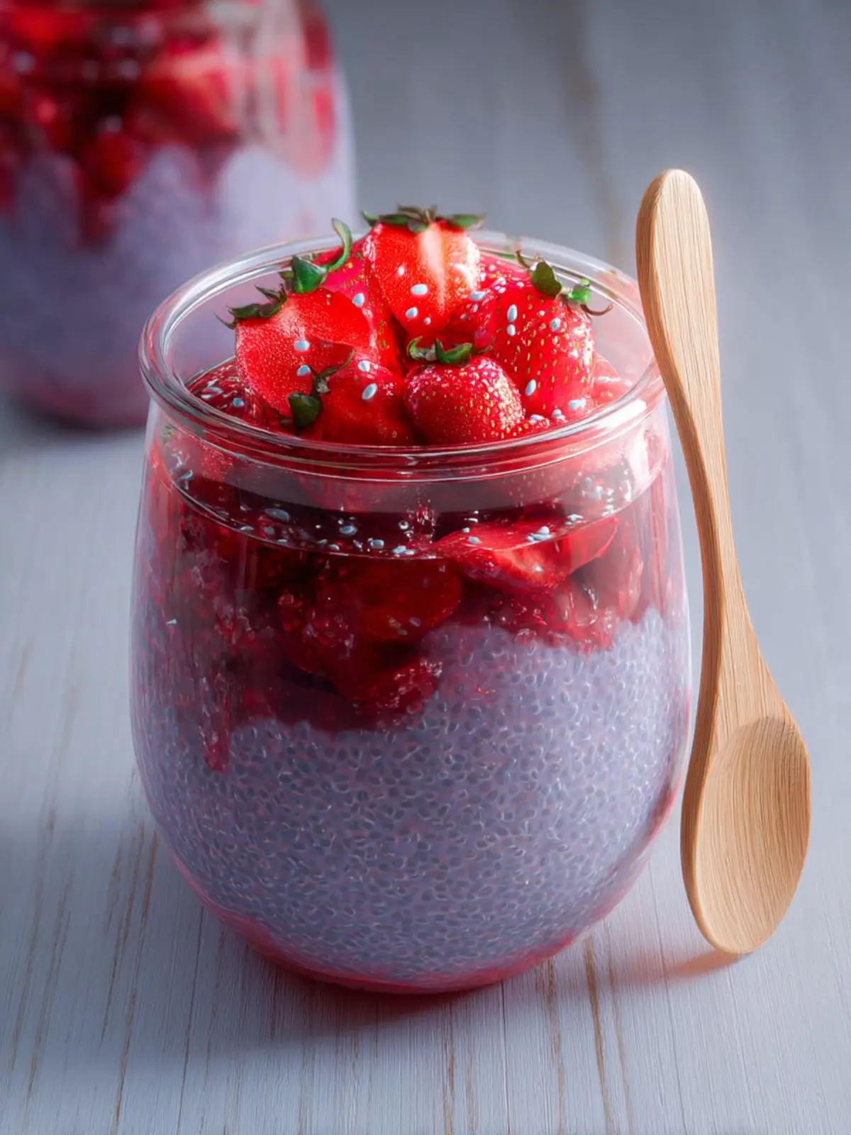 Almond Milk: I prefer unsweetened almond milk for its lightness and subtle nutty flavor. It blends perfectly with the chia seeds, creating a creamy consistency without overwhelming the fresh strawberry taste. If you’re not a fan of almond milk, feel free to substitute with any other milk alternative.